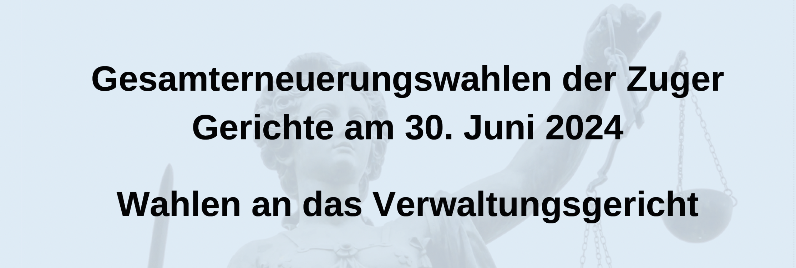 Gerechtigkeit, eine funktionierende Justiz, Vertrauen der Öffentlichkeit in die Rechtssicherheit und in die Gerichte sind zentrale Werte unserer Demokratie und unseres Rechtsstaates. Am 30. Juni 2024 findet die Wahl zur Besetzung des Zuger Verwaltungsgerichts für die nächsten sechs Jahre statt.